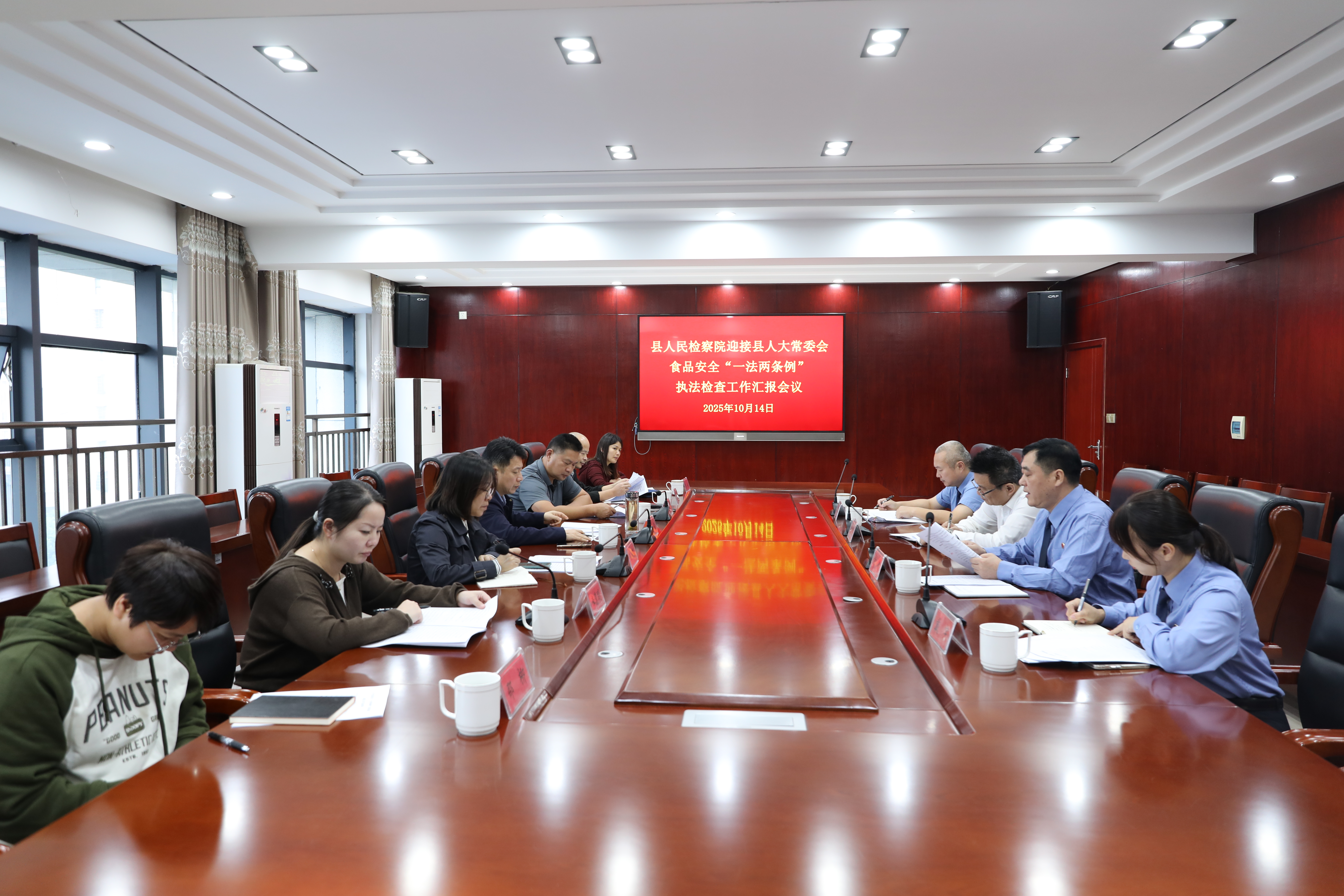 10月14日下午,湘阴县人大常委会主任邓淼带领执法检查组一行深入湘阴县人民检察院,就《中华人民共和国食品安全法》及其实施条例贯彻落实情况开展“一法两条例”专项执法检查。湘阴县人民检察院党组书记、检察长刘春生及相关负责同志参加检查。